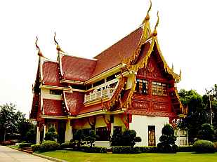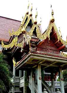 The entrance pictured left, leads up the to the Wiharn (temple community hall) and is in itself an excellent reason to spend a few moments here. The main chapel is yet to be finished, but if its roof is any guide to is final appearance, it will be fantastic. |